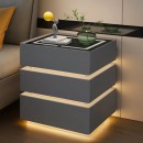 Intre cele 3 sertare este integrata o banda LED discreta, care lumineaza elegant spatiul din jurul noptierei. Iluminarea LED ofera 3 tipuri de lumina: rece, naturala si calda, fiind ideala ca lumina de veghe sau iluminare ambientala, fara a deranja somnul.