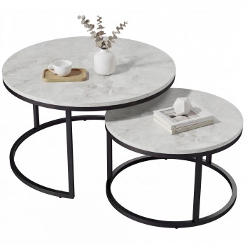 Adaugă un plus de eleganță și funcționalitate livingului tău cu acest set de două măsuțe de cafea suprapuse. Designul modern și rafinat combină un cadru metalic negru robust cu un blat elegant din marmură albă și neagră, oferind un contrast sofisticat care se potrivește perfect în orice decor contemporan.
